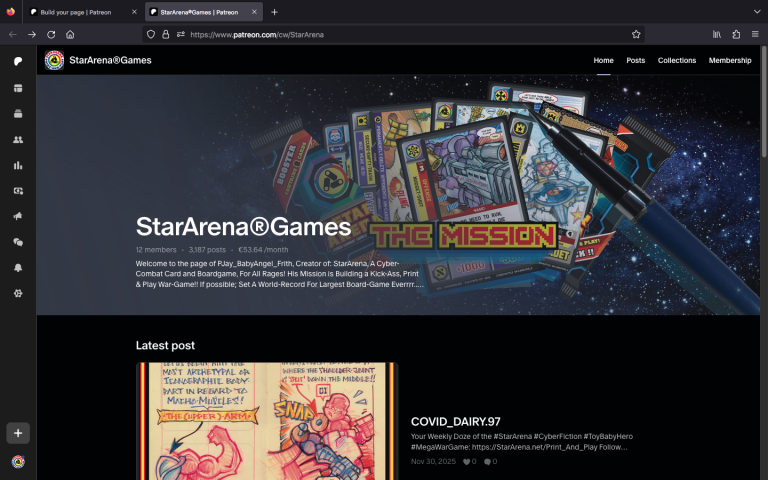 On the one-side one needs to be careful with what one promises, on the other-hand; A line in the sand needs to drawn! My Patron-Page has fallen behind these past few years, but come 2026 it must live-up to its purpose as Open-Studio! After a long-string of adversity and multiple health-issues, somewhere I need to believe that after the Ordeal, cometh the Boon. This Platform will become a War-Log _Open-Studio explained: A place of direct info on production-progress_ and where Comics & Cards premiere!! Where War-Stories thrive…